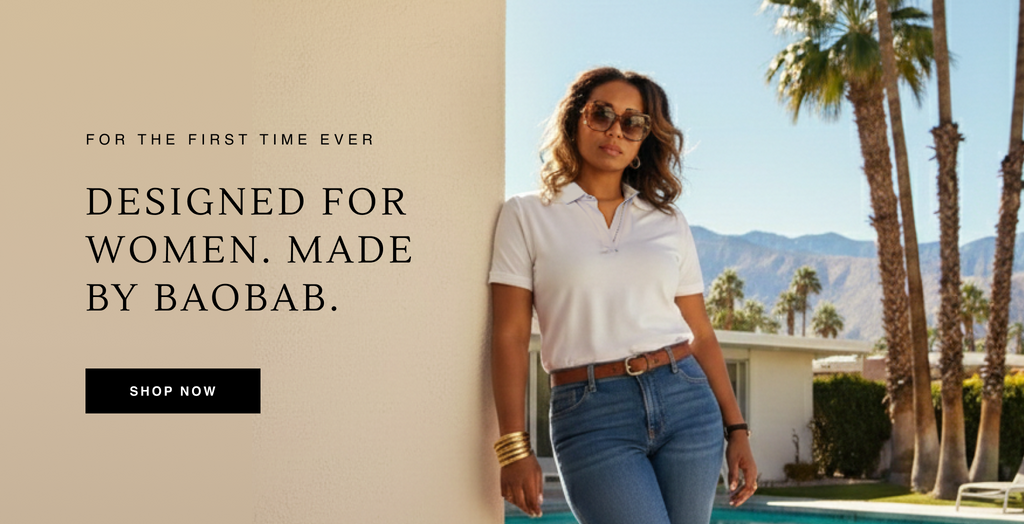 The BAOBAB Polo shirt is the first sustainable, performance polo shirt that is resistant to shrinking, fading, odors, wrinkles. Thanks to our patent-pending Stay Flat No-Curl collar we have eliminated the problem of "bacon collar".